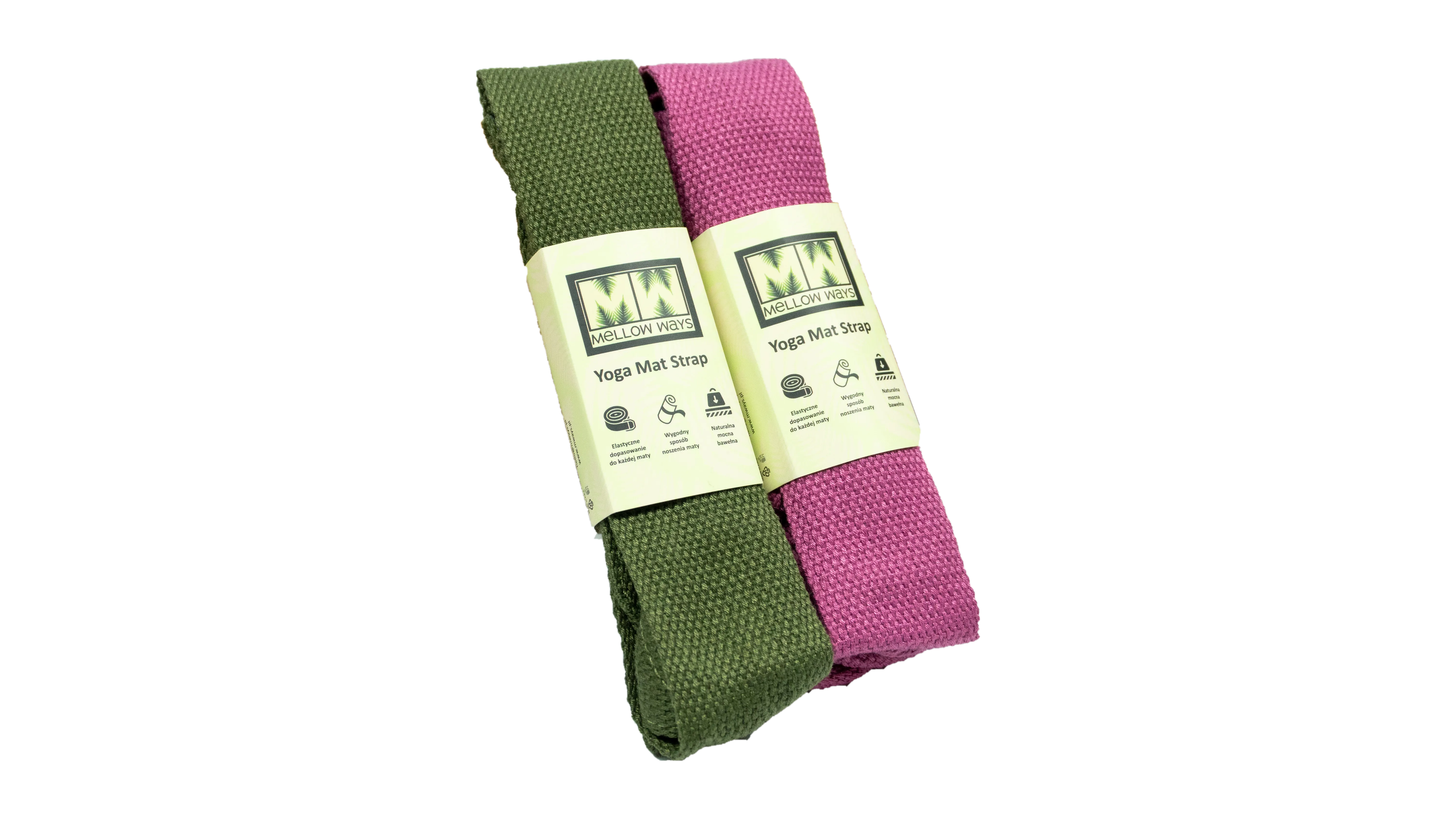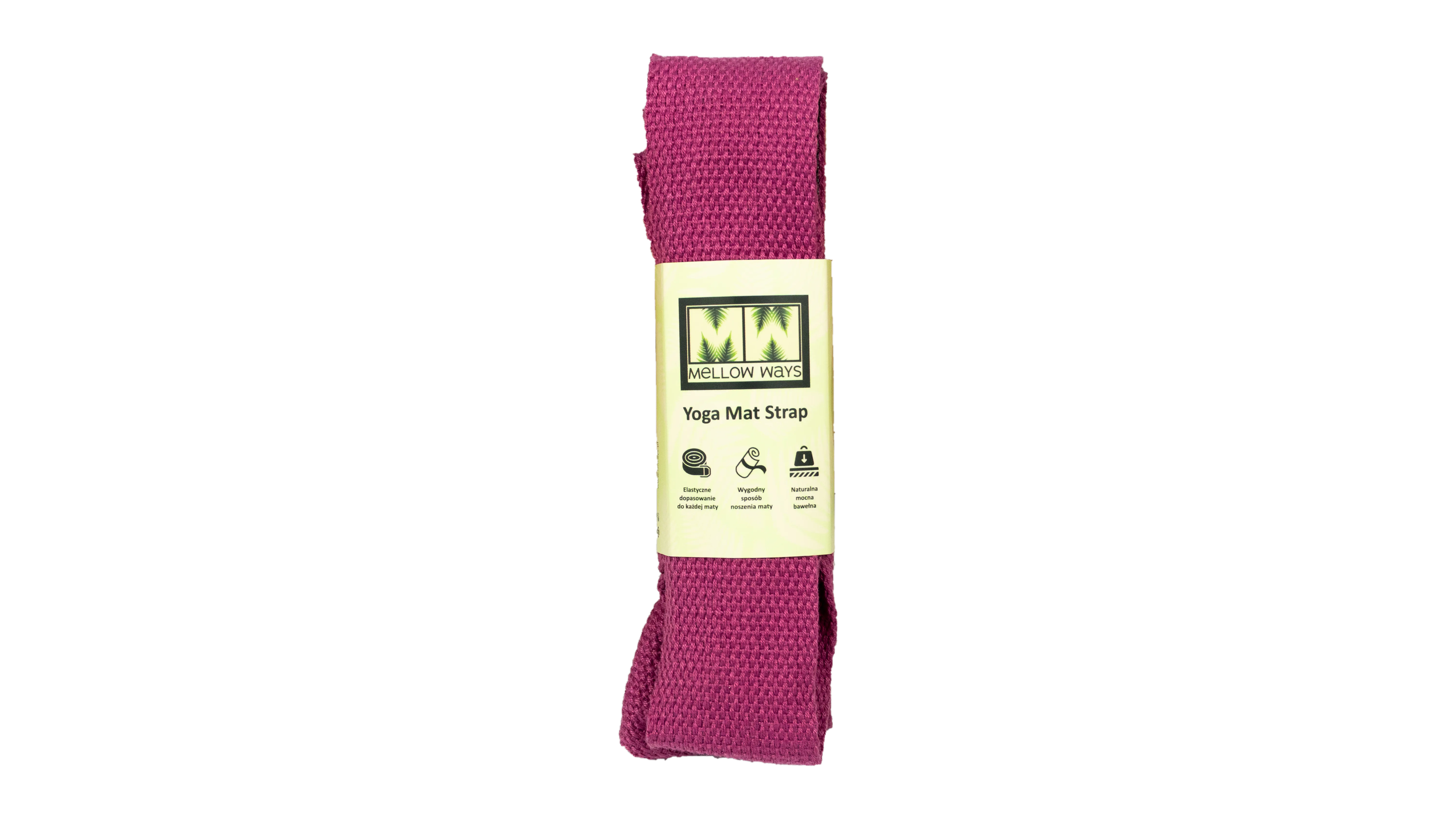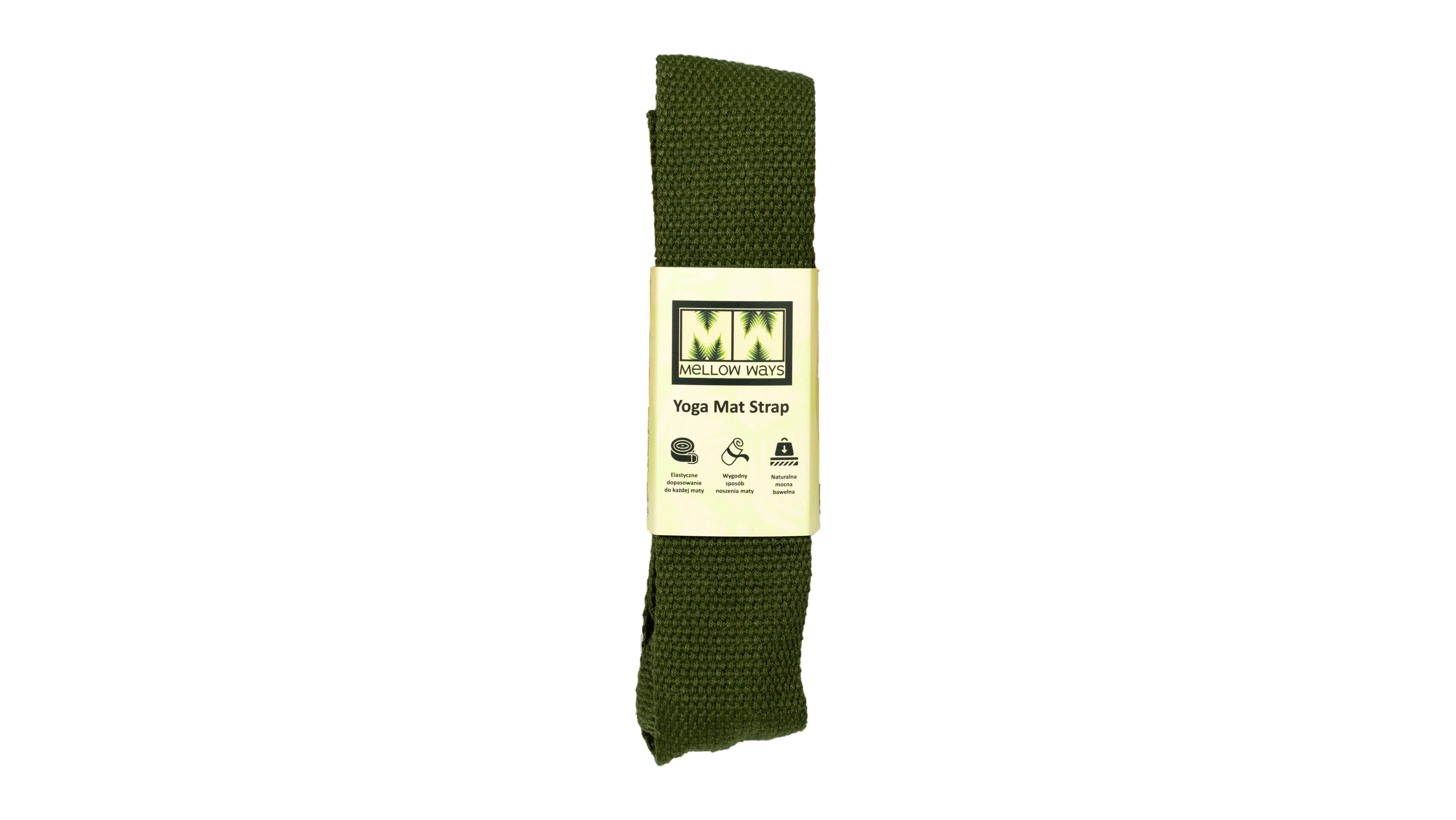 Solidny pasek do transportu maty do jogi. Mocna bawełna, ładne wykończenie, łatwy do zakładania na matę.