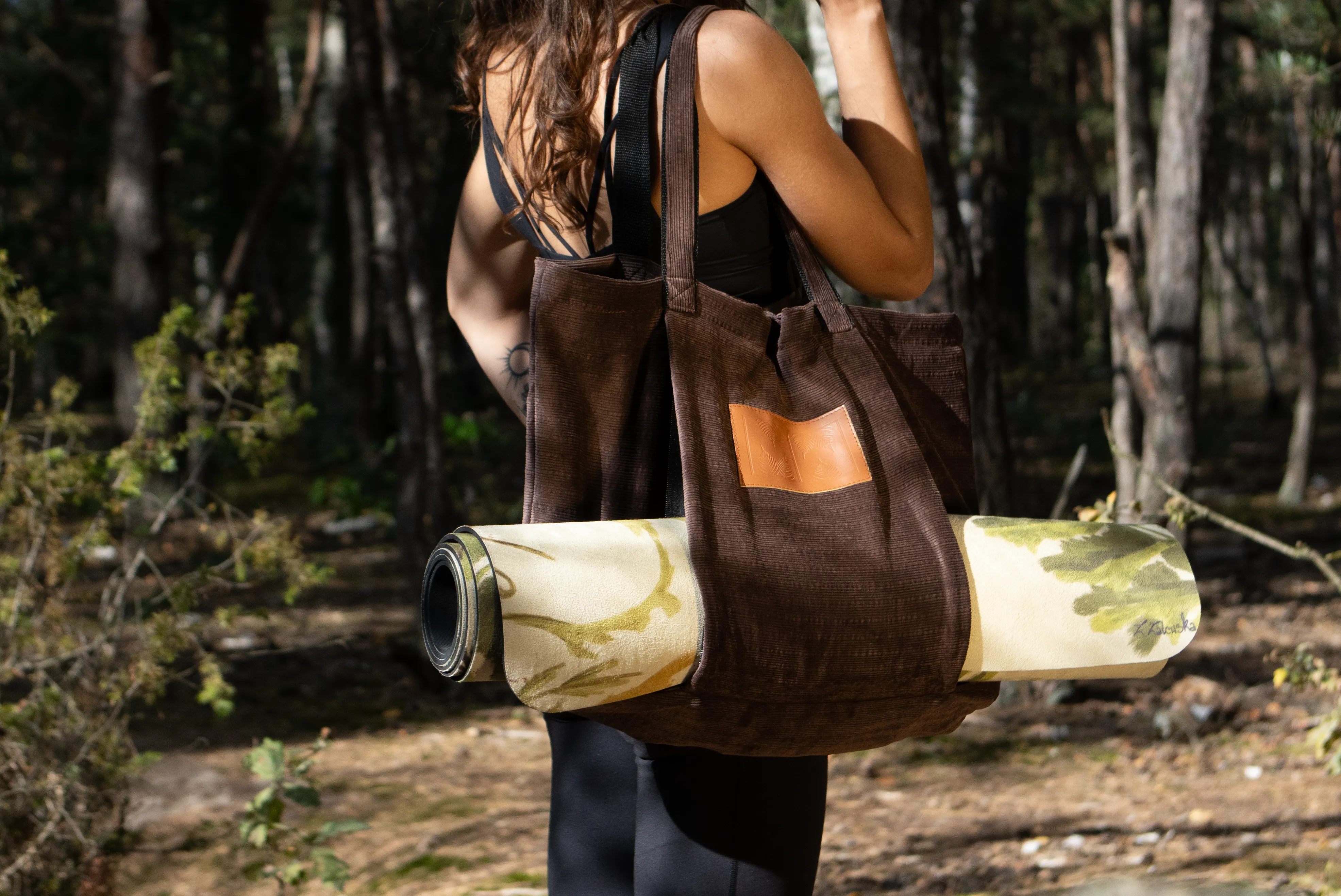 Torba TANSY Umber od Mellow Ways łączy sportowy i elegancki design. Wykonana z miękkiego sztruksu z wykończeniem ze skóry PU, została stworzona z myślą o osobach aktywnych, które chcą wygodnie przenosić matę do jogi lub akcesoria treningowe. Doskonała również do codziennego użytku ze względu na jej miejski styl.